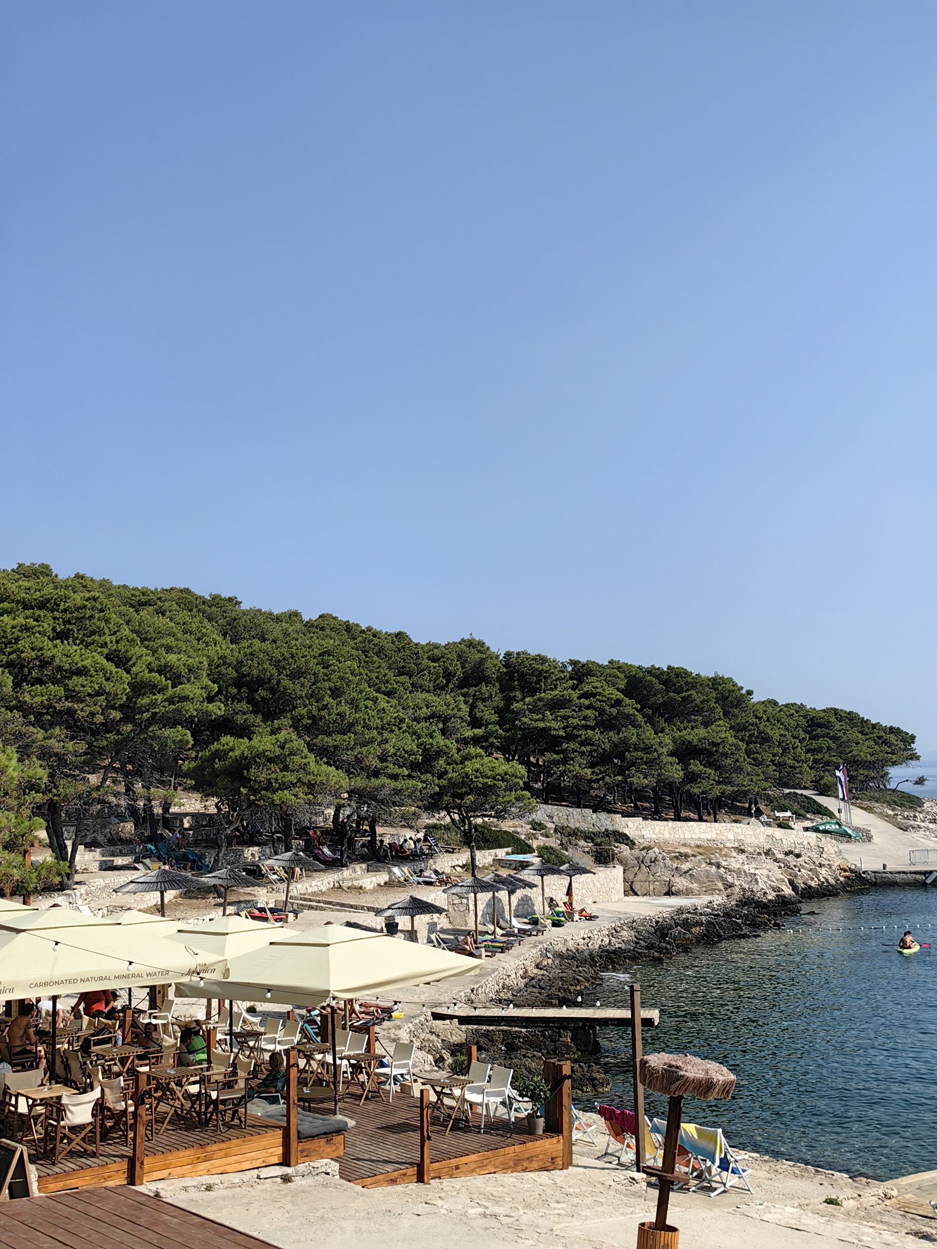 U blizini se nalazi i nekoliko manjih šljunčanih plaža između stijena, ali cijeli otok je idealan za istraživanje stjenovitih uvala. Zalazak sunca ispratite u Sundowner baru koji je odlična opcija i za jutarnju kavu ako želite mir i tišinu u debeloj hladovini.