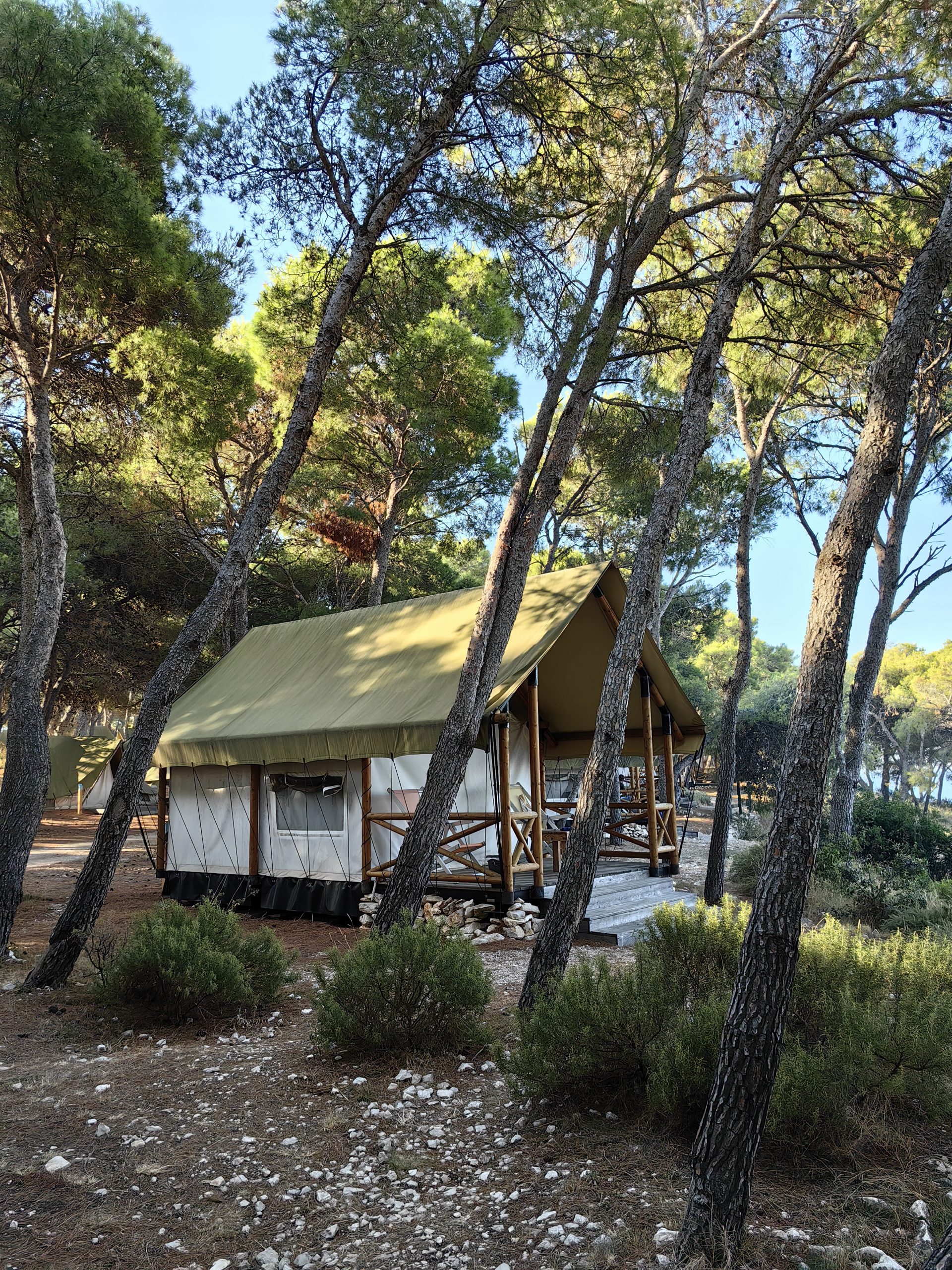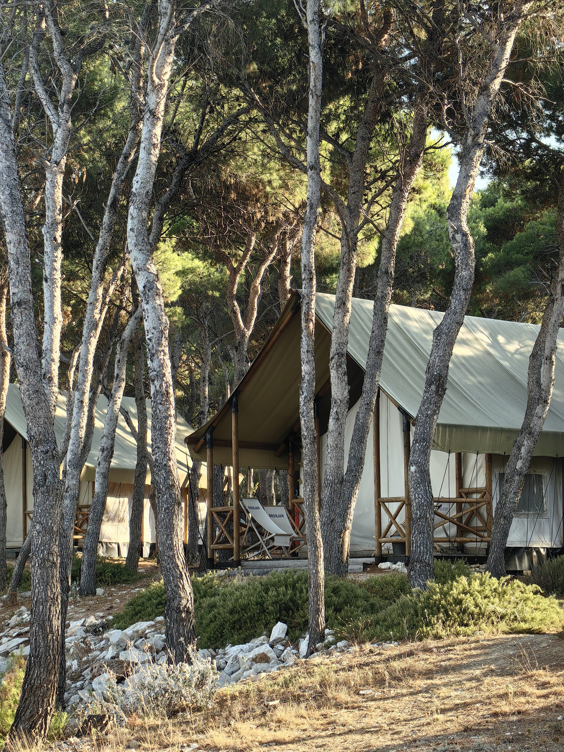 Iako ne možemo nužno preporučiti niti jedan smještaj jer će ga svatko izabrati prema svojim afinitetima, ipak u onaj najposebniji spadaju Glamping Lodges koje su hibrid šatora i kućice s malom terasom. Ono što je kod Glamping Lodges zaista posebno jest da možete birati pogled prema moru, borovoj šumi i onaj najbolji – pogled prema zalasku sunca. Zamislite samo kakav je osjećaj sjediti na terasi uz pogled na more i zalazak sunca uz zvuk crčaka, bez buke ljudi i auta…